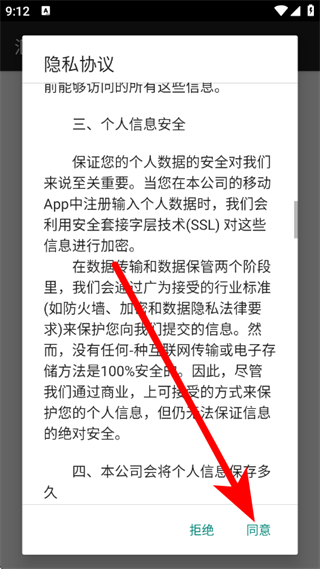1、打开汇美婚礼,在隐私协议页面,点击同意。