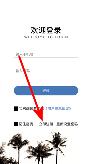 2、在欢迎登录页面,点击立即注册,进入注册界面。