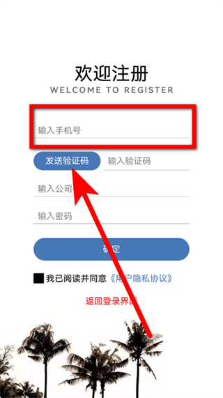 3、在欢迎注册页面,输入手机号,点击发送验证码。