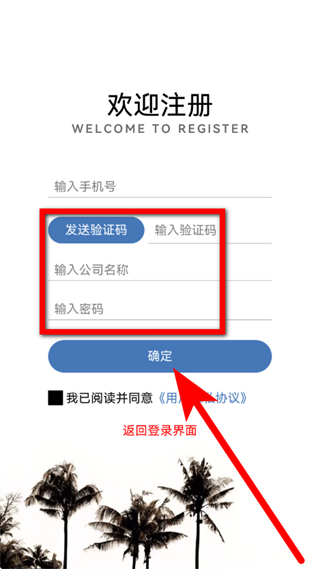 4、输入验证码,设置密码,确认勾选同意协议后,点击确定,完成注册。