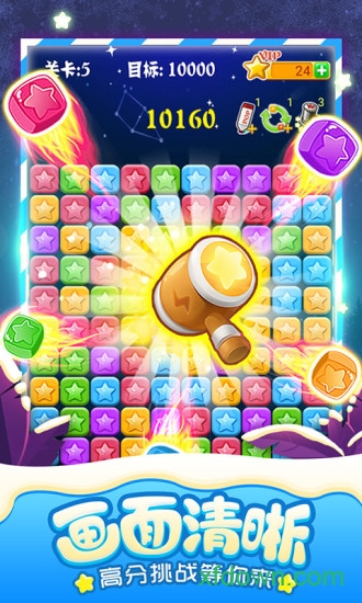 全球累计拥有4亿玩家,深受玩家喜爱。游戏画面清新,玩法简单易上手,只要点击相邻的同色星星即可消除得分,没有关卡限制,是一款一旦开始便停不下来的轻松益智小游戏。