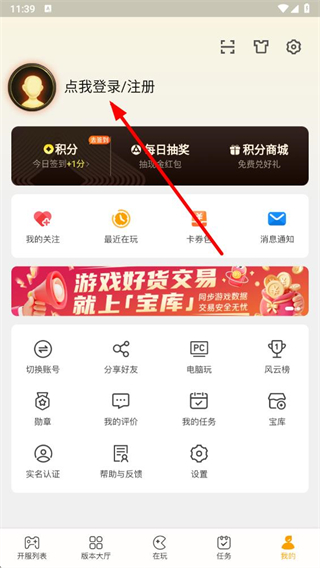2、在个人页面,点击登录注册选项,进入登录相关界面。