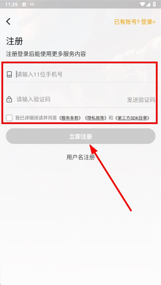 4、在注册页面,填写手机号、设置密码,勾选协议后,点击立即注册完成账号注册。