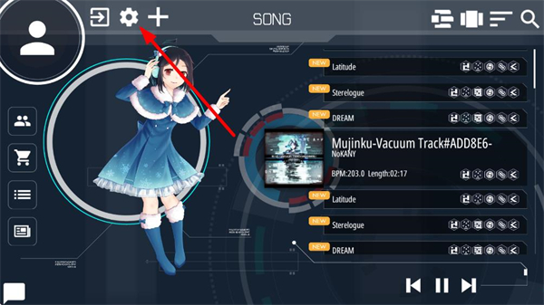 2、在主界面点击顶部,点击齿轮形状设置按钮,进入游戏的设置配置页面。