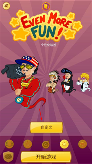4、在个性化装扮界面,可点击自定义按钮装扮角色,再点击开始游戏按钮进入挑战。
