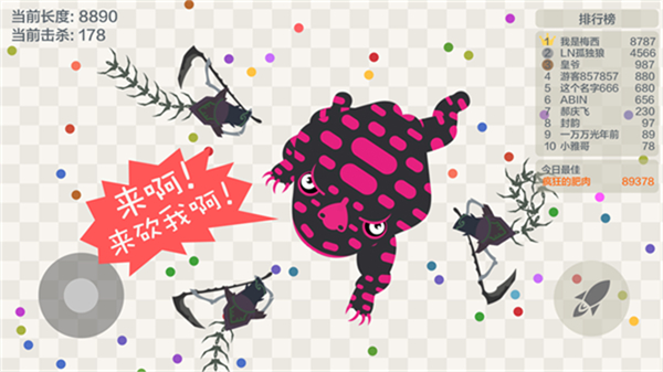 3、在全场比赛模式中,躲避其他玩家的蛇身,同时寻找机会收集更多圆点,提升Combo数。