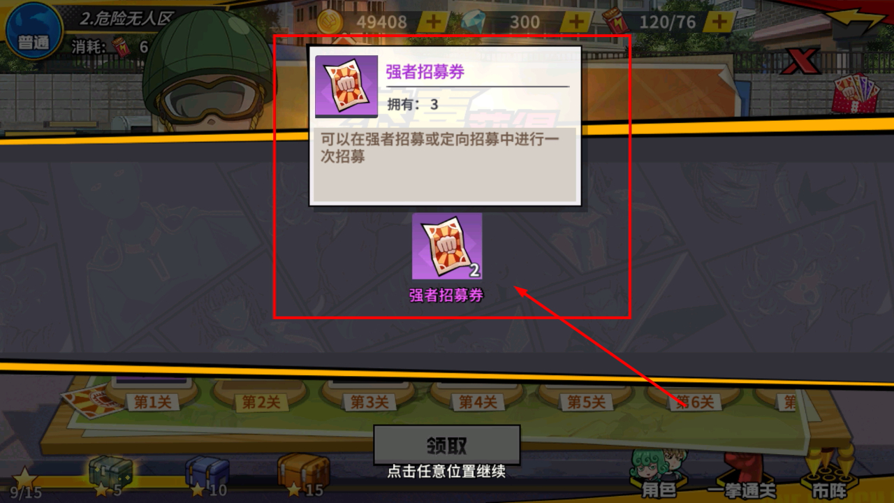 3、拥有强者招募券可在强者或定向招募中进行招募,合理使用该券能获取强力角色提升战队实力。