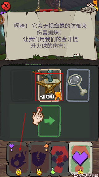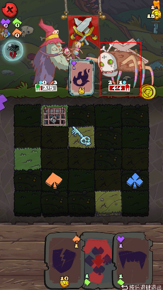 3、在场景中使用卡牌攻击蜘蛛,推进地牢探索的进程。