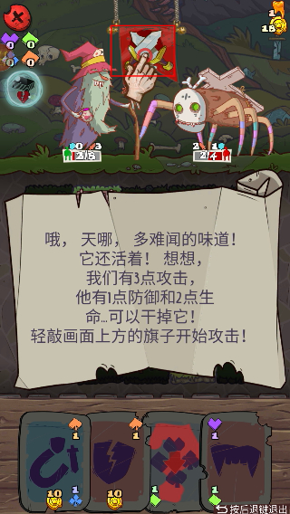 4、根据提示轻敲画面上方的【旗子】,攻击蜘蛛,完成战斗。