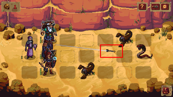 2、战斗时利用技能对横线上所有敌人造成【2点伤害】,合理瞄准敌方单位推进战局。