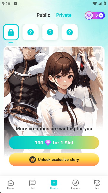 3.想与特定角色对话时,可通过“创建角色”功能快速生成一个符合你想象的AI人物,与其开始即时交流。