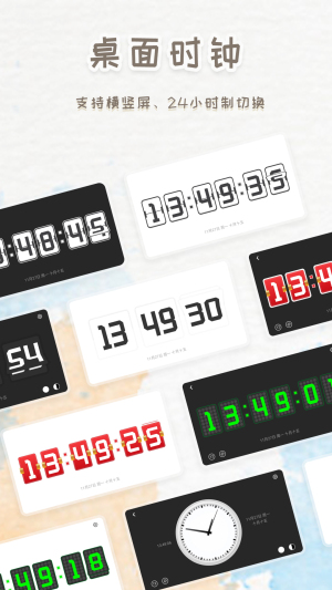 3. 个性化外观支持,包括浅色、深色主题和多种时钟界面,让应用的界面视觉效果更加舒适赏心。