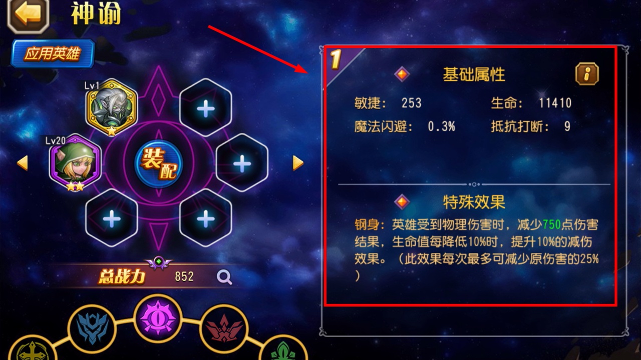 4、装配神谕后敏捷253生命11410,触发【钢身】效果减物理伤害,大幅提升角色生存与输出能力。