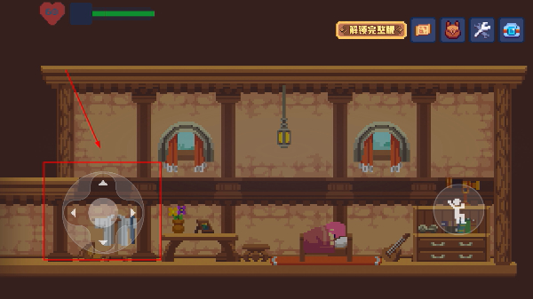 2、进入室内场景后,通过左侧的方向摇杆控制角色移动。