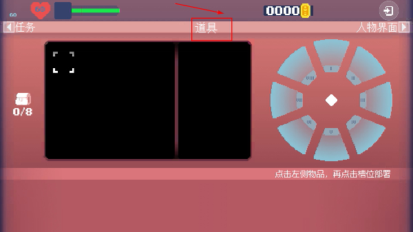 4、打开【道具】界面,按提示点击左侧物品后选择空位部署,完成道具的配置操作,助力后续探索与战斗。