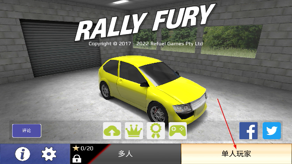 1、点击【单人玩家】按钮,进入游戏的拉力赛车关卡挑战阶段。