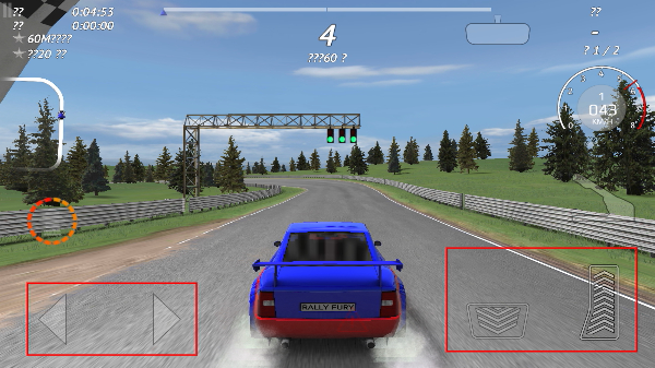 2、进入赛道后,用【方向按钮】操控赛车转向,配合【油门-刹车按钮】控制车速,适应赛道地形。