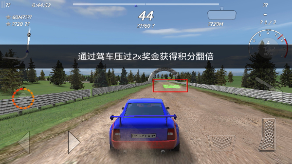 3、驾驶赛车压过【2x-奖金区域】,触发积分翻倍效果,快速提升关卡内的得分数值。