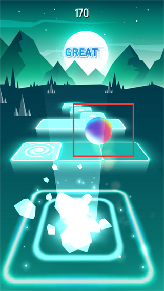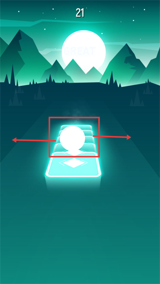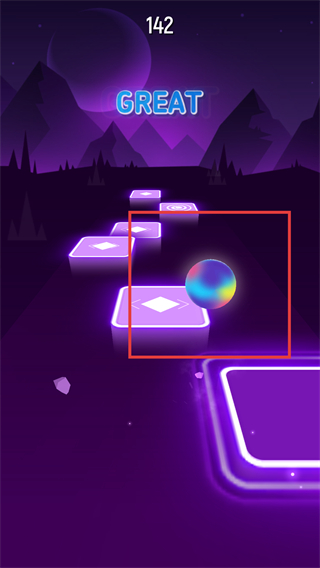 1、紫色场景中操控【球体】沿发光平台移动,完成操作可获得【GREAT】评价提升分数。