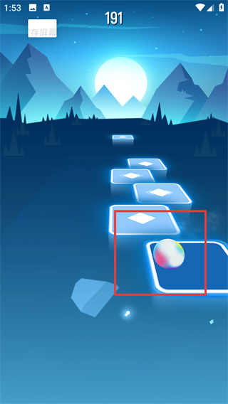 2、关卡中操控被框选的球体,跟随节奏在轨道上左右移动,匹配轨道的变化,积累分数(当前显示21)。