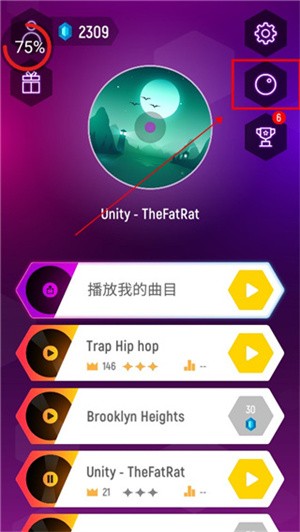 1、下载安装好游戏点击进入游戏首页,选择你喜爱的歌曲开始游戏。