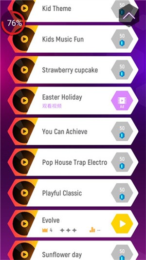 6、在首页下滑可以解锁更多其他歌曲,根据自己的喜好挑战他们。