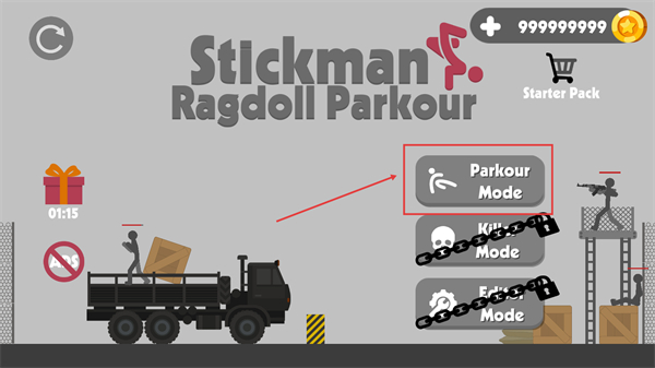 1、选择【ParkourMode】进入跑酷模式,可使用【金币】购买道具,开启火柴人竞技的自由乐趣。