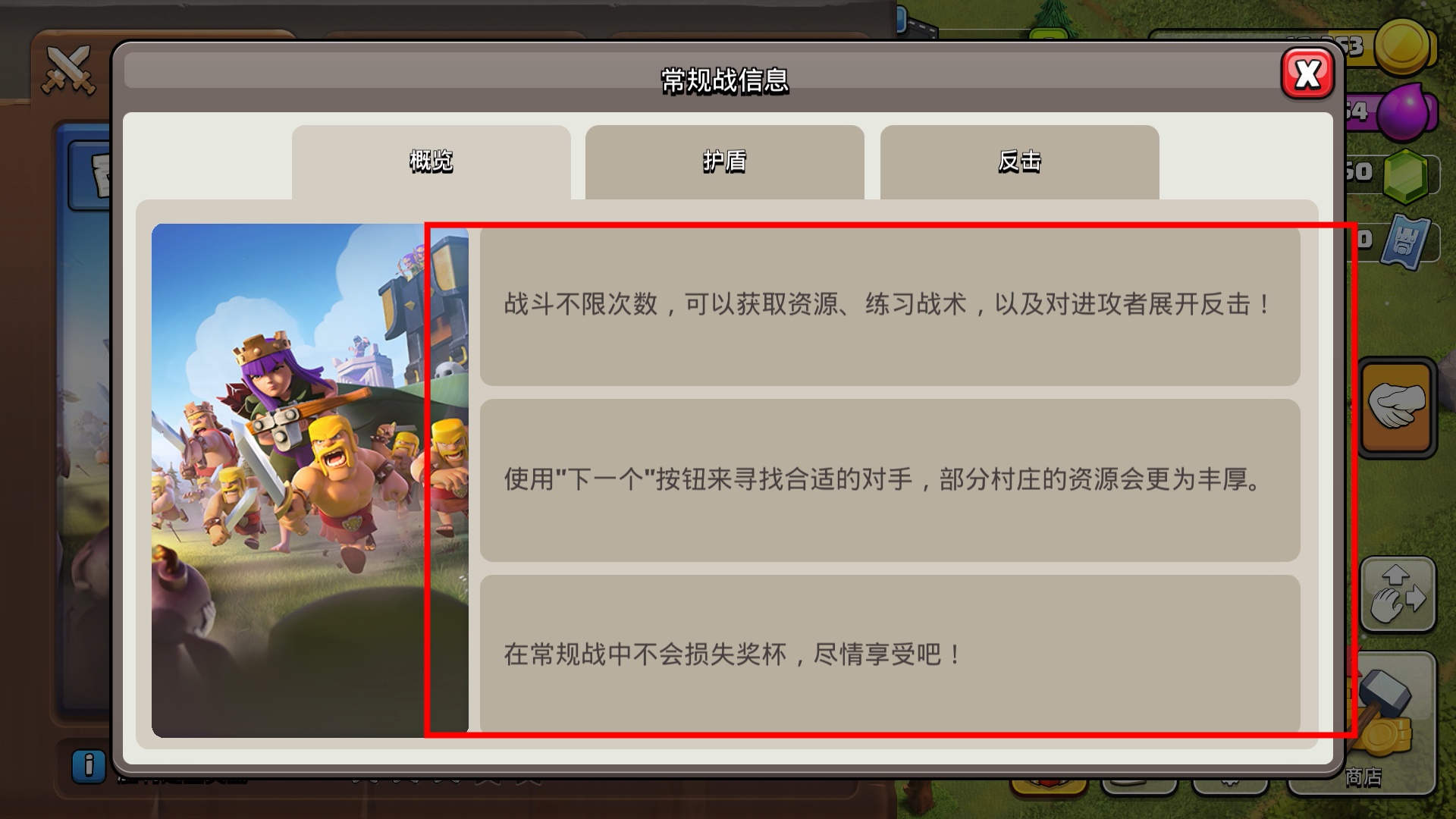 1、常规战战斗不限次数,可获取资源练习战术反击对手,用下一个按钮找对手,且不会损失奖杯,能尽情体验对战乐趣。