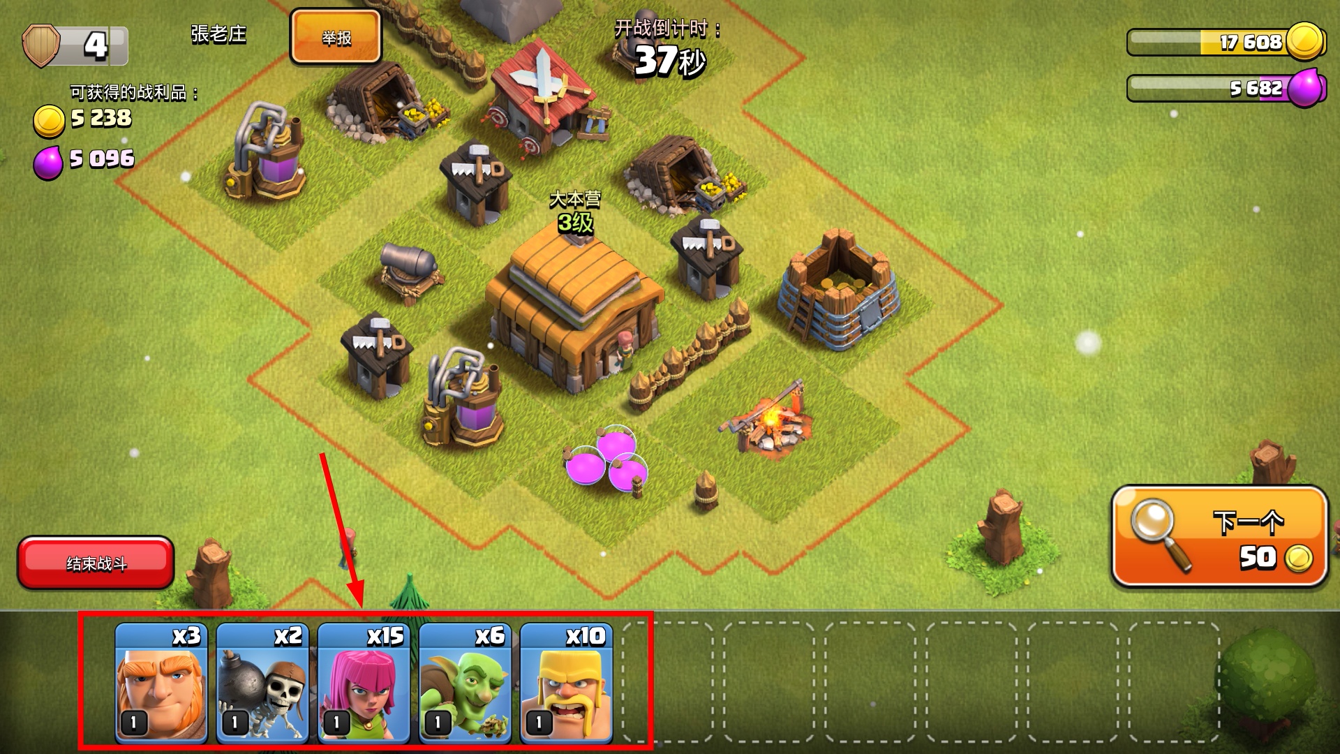 3、战斗前确认携带【15】个弓箭手,搭配其他兵种,等待倒计时结束后发起进攻获取胜利之星。