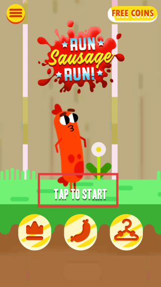 1、游戏初始界面,点击【TAPTOSTART】,让香肠角色开始奔跑冒险。