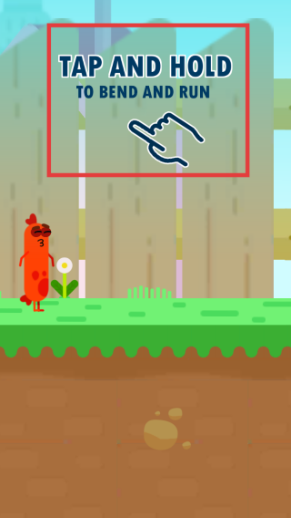2、游戏中按【TAPANDHOLDTOBENDANDRUN】提示,长按屏幕控制香肠弯曲奔跑,躲避障碍。