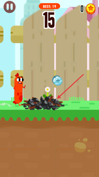 2、奔跑时躲避上方悬挂的【刀具】障碍,同时避开右侧的高温区域,避免香肠受伤影响通关。