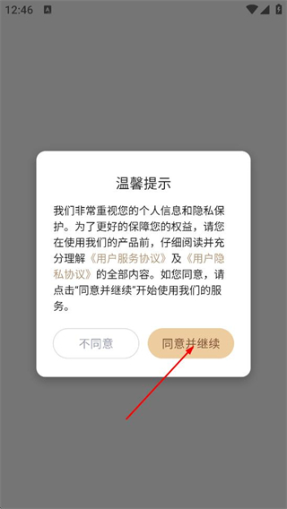1、阅读用户服务协议及用户隐私协议后,点击同意,进入应用首页。