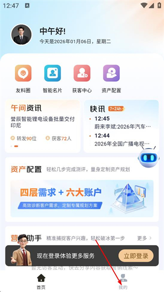通过高效的内容策略生产能力与智能数字化名片功能,助力理财师快速对接潜在客户,轻松获得更多客户资源,大幅提升获客效率与对接成功率,拓展业务范围。