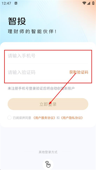 3、在登录页面,填写手机号和验证码后,再点击立即登录,完成登录操作。