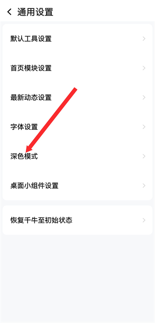 3、在通用设置界面,点击深色模式,进入深色模式设置页面。