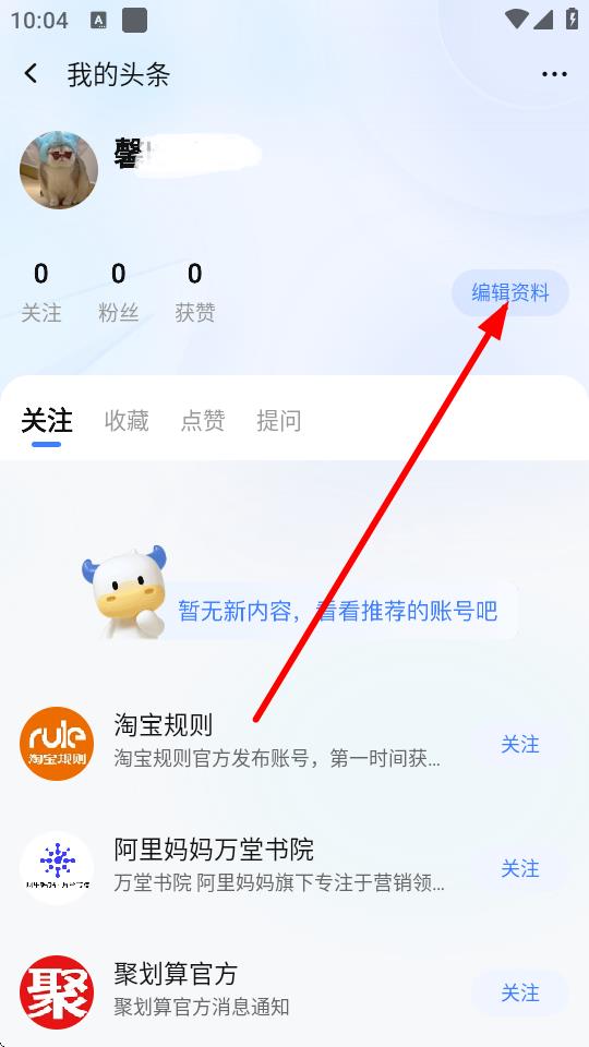 2、在头条界面点击右上角人像图标,进入我的头条页面。