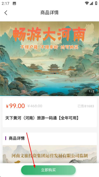 2、在商品列表中,点击目标商品的立即购买按钮,可进入该商品的详情页面。