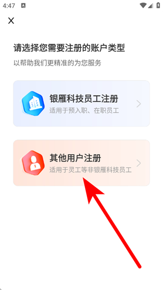 4、在账户类型选择页面,点击其他用户注册,进入注册页面。