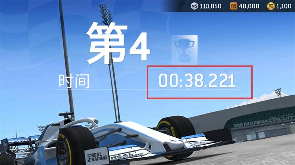 4、冲过终点后查看成绩,本次赛程获得【第4】名,用时【00:38.221】,完成该场比赛。