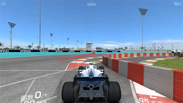 2、赛程中关注【圈数0/1】,操控车辆沿赛道行驶,在弯道区域精准转向,保持速度。