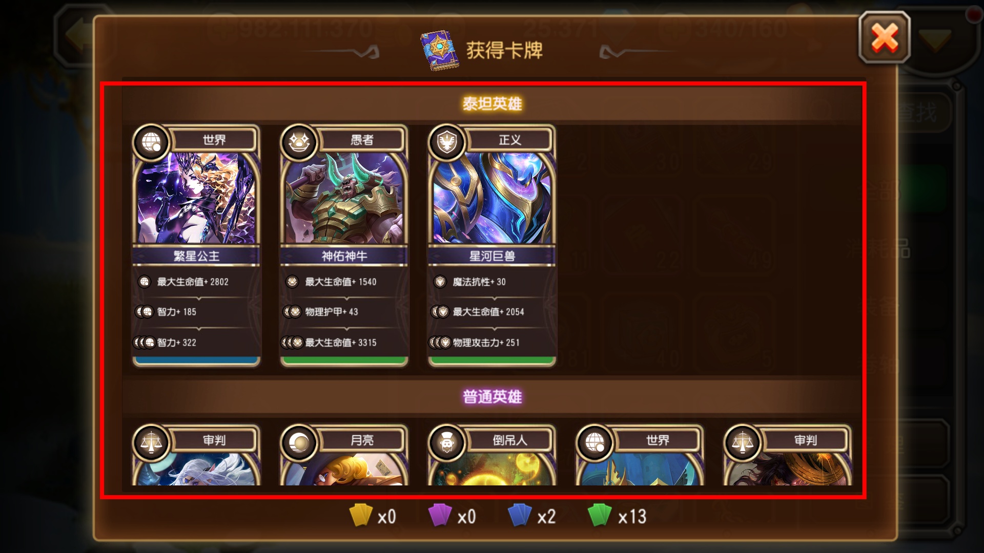 4、使用卡包后获得【泰坦英雄】-【普通英雄】,如【繁星公主】等,提升属性增强战力。