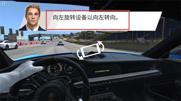 1、按照提示【向左旋转设备以向左转向】,通过转动设备来操控车辆的转向方向。