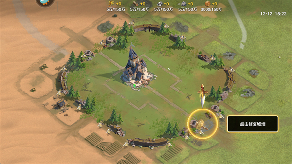 5、收集完木材后,点击修复城墙,城墙可以抵御外来敌人的进攻;