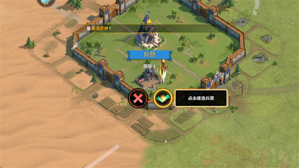 8、然后再城池中选择合适的位置建造兵营,之后玩家只要跟随任务引导一步一步的发展即可,不断壮大自己的城池和兵力,击败更多的对手。