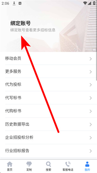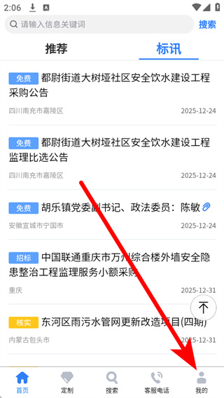 1、打开中国招标网,点击底部导航栏的我的选项,进入个人中心页面。