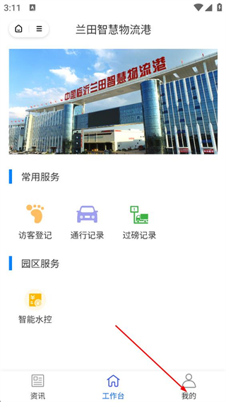 1、在兰田智慧物流页面,点击底部的我的选项,进入个人页面。