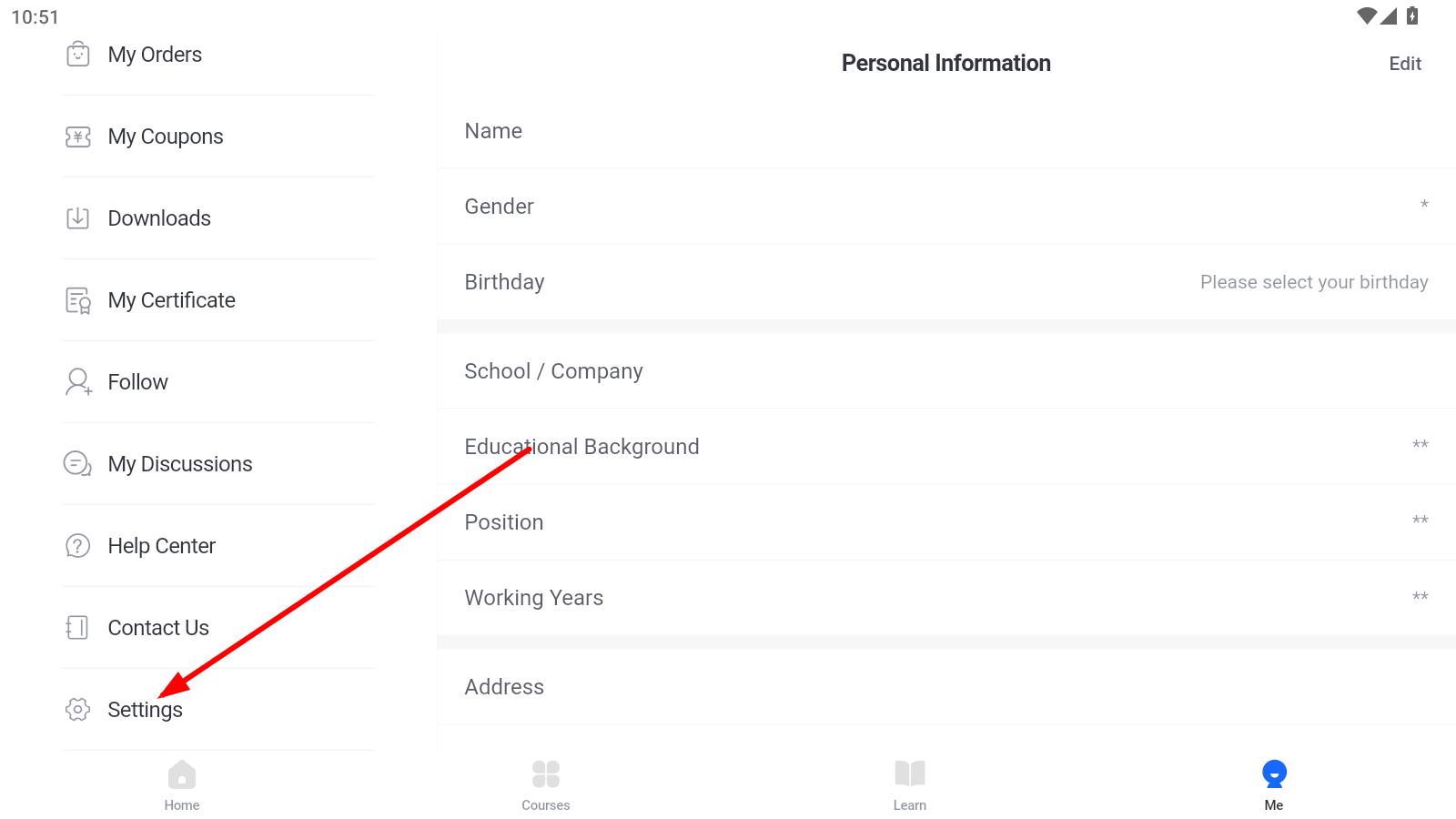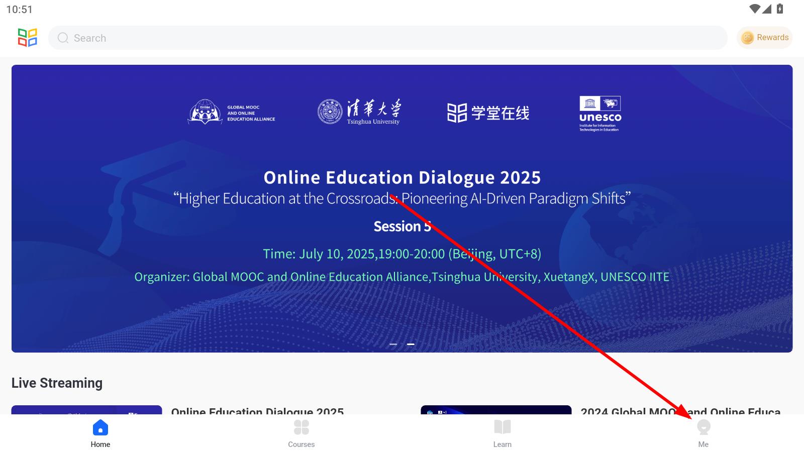1、打开学堂在线APP,点击页面右下角的Me,进入个人页面。