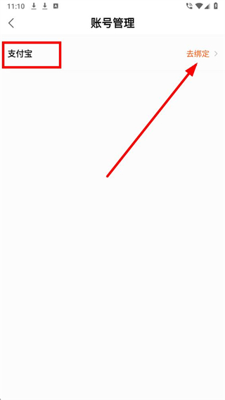 4、在账号管理界面,点击支付宝选项旁的去绑定按钮,按提示完成支付宝账号的绑定操作。