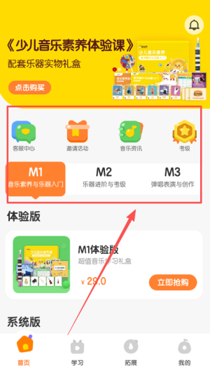 1、首先下载安装音乐壳,进入主界面后注册账号,可以选择适合自己孩子的课程,为其提供针对性的音乐启蒙。